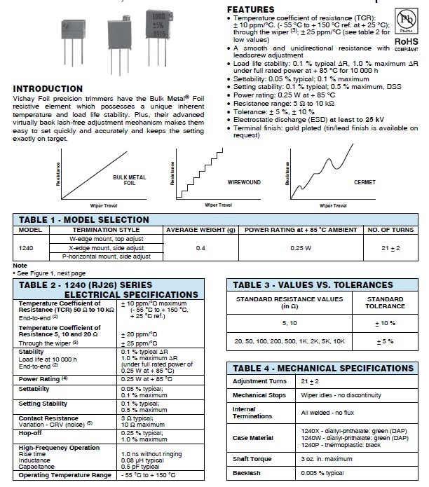 Vishay Foil precision trimmers have the Bulk Metal® Foil resistive element which possesses a unique inherent temperature and load life stability. Plus, their advanced virtually back lash-free adjustment mechanism makes them easy to set quickly and accurately and keeps the setting exactly on target.ZKX廣州南創(chuàng)電子科技有限公司