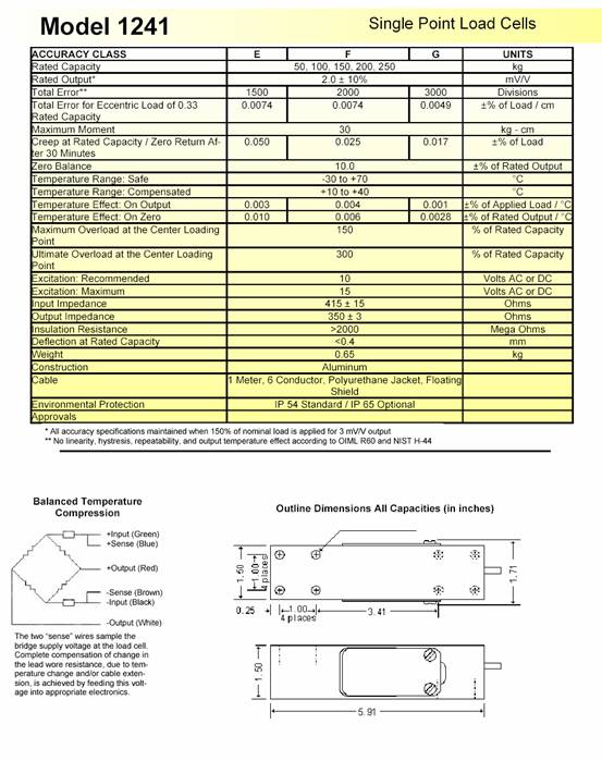 美國特迪亞1241-100kg傳感器技術(shù)指標(biāo):E7S廣州南創(chuàng)電子科技有限公司