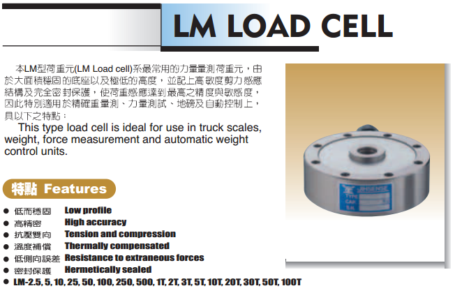臺灣JIHSENSE荷重元LM-100kg特點(diǎn)Feature: