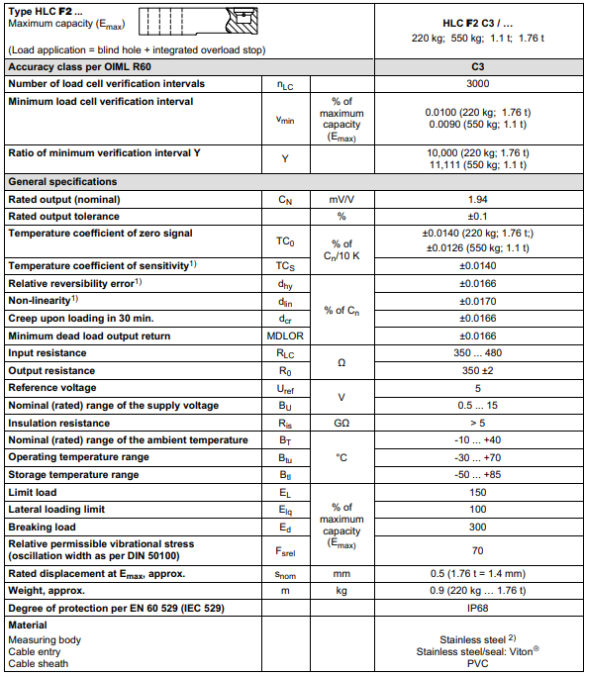 稱(chēng)重傳感器HLCF1C3/1.76t按照OIML R60標(biāo)準(zhǔn),測(cè)量分度高達(dá)3000分度dT3廣州南創(chuàng)電子科技有限公司