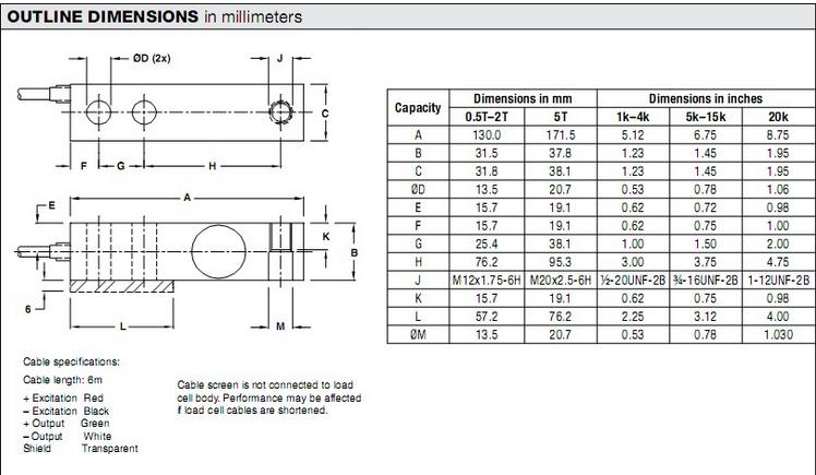 21470: Load Cell,SBM 363-B10-2K-20P1 2,000 lb 20ft RTI 3mV/V 350 OHM WW NTEP IIIL 10 S FM DXA廣州南創(chuàng)電子科技有限公司