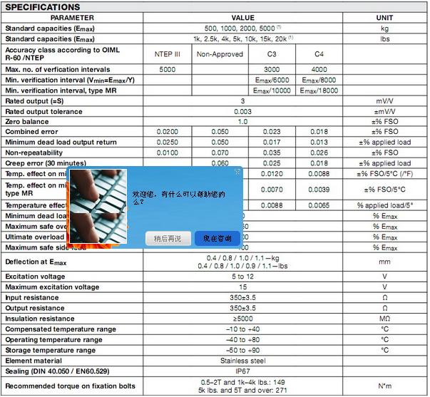33554:  65083S-4k-5100 4000lb 20ft SENTRS 2mV/V 350 OHM NTEP Class III 5m  HS WS IP67DXA廣州南創(chuàng)電子科技有限公司