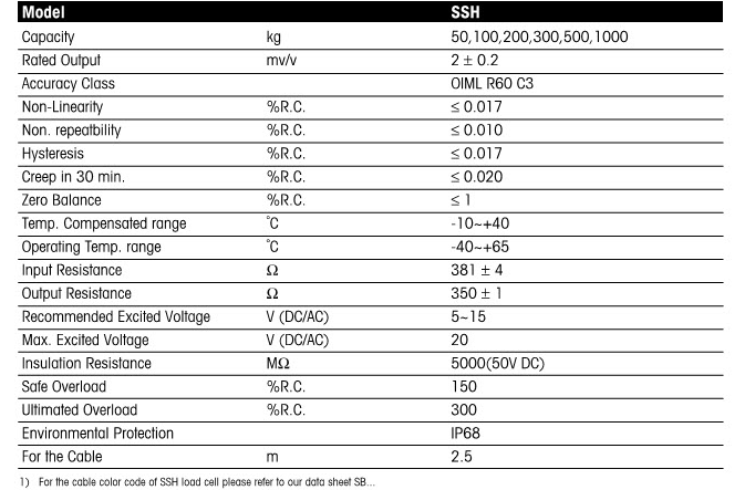 的SSH負載細胞的特征:S5l廣州南創(chuàng)電子科技有限公司