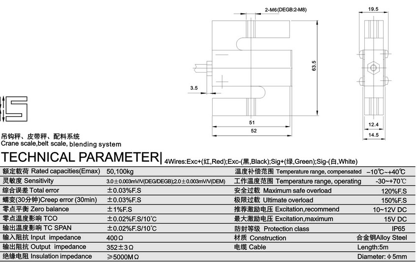 DEGB-100KG稱重傳感器安全過載能力:150%;XhA廣州南創(chuàng)電子科技有限公司
