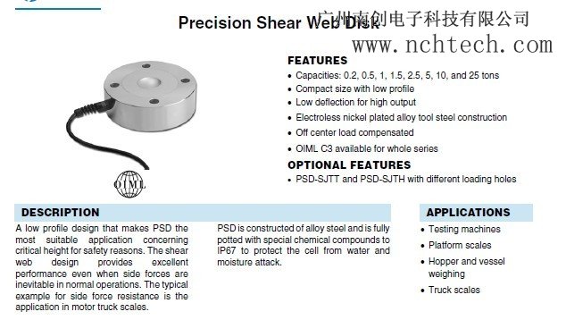 美國(guó)世銓PSD-10t稱(chēng)重傳感器技術(shù)參數(shù):w8c廣州南創(chuàng)電子科技有限公司