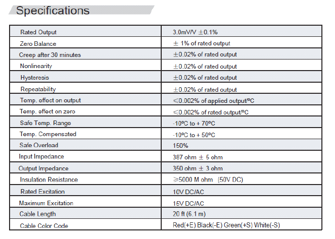 SBSB-1000kg傳感器的技術參數(shù):ulE廣州南創(chuàng)電子科技有限公司