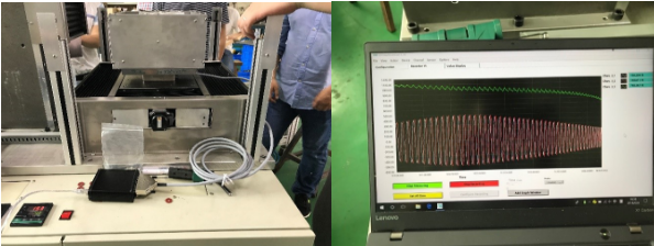 傳感器被安裝在加熱爐底部的固支平臺上,作為測試部件串聯(lián)在結(jié)構(gòu)中,平臺下方是三軸聯(lián)動機床,測試過程中,我們對傳感器的受熱溫度進行監(jiān)測,發(fā)現(xiàn)傳感器上方安裝板的溫度在40℃左右,這個溫度并不影響傳感器的使用;4eZ廣州南創(chuàng)電子科技有限公司