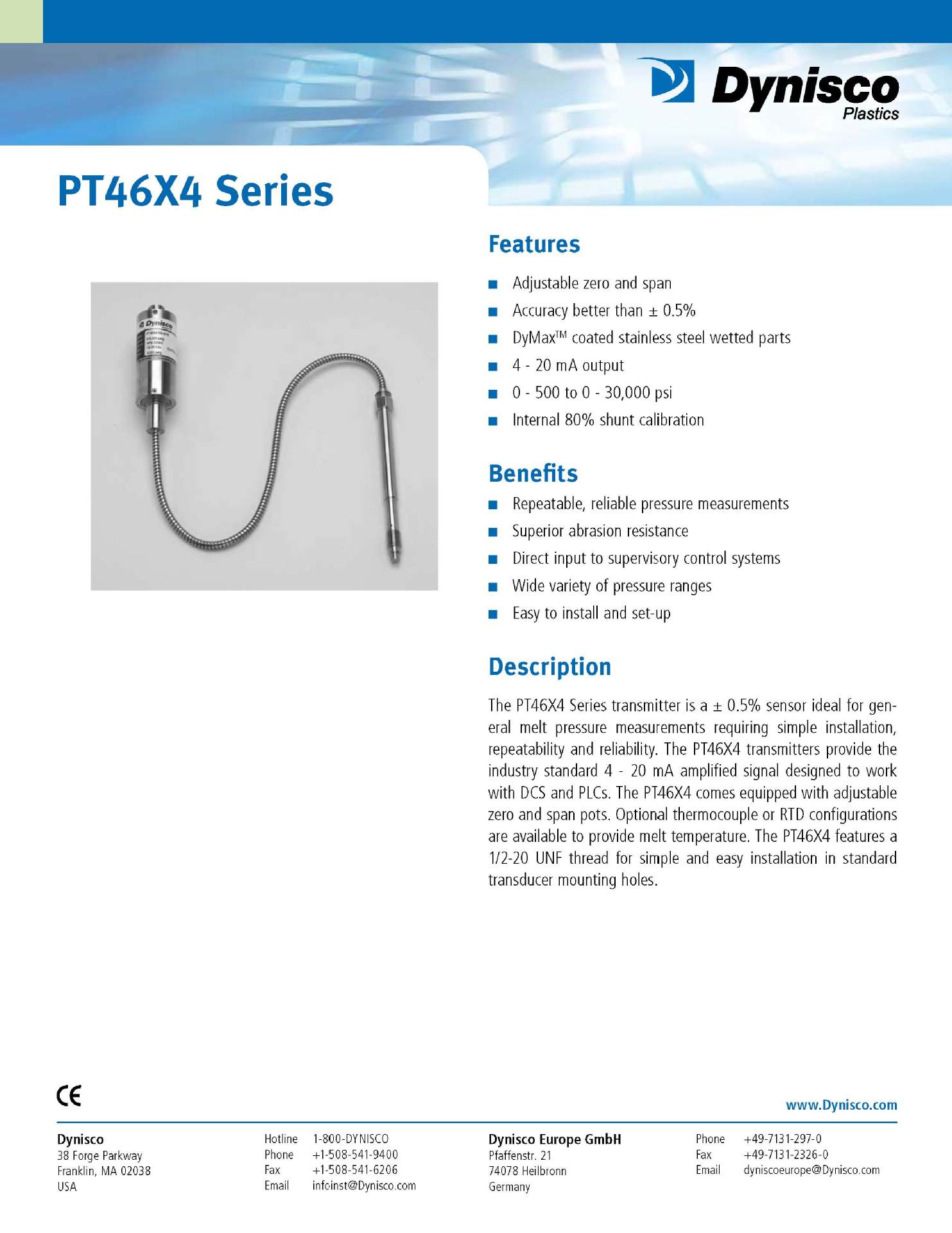 PT4626-35MPA-6/18美國Dynisco丹尼斯科溫熔體壓力傳感器 變送器