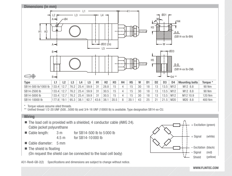 美國(guó)Flintec稱(chēng)重傳感器SB14-4536kg-BH GP-s產(chǎn)品技術(shù)參數(shù):Db0廣州南創(chuàng)電子科技有限公司