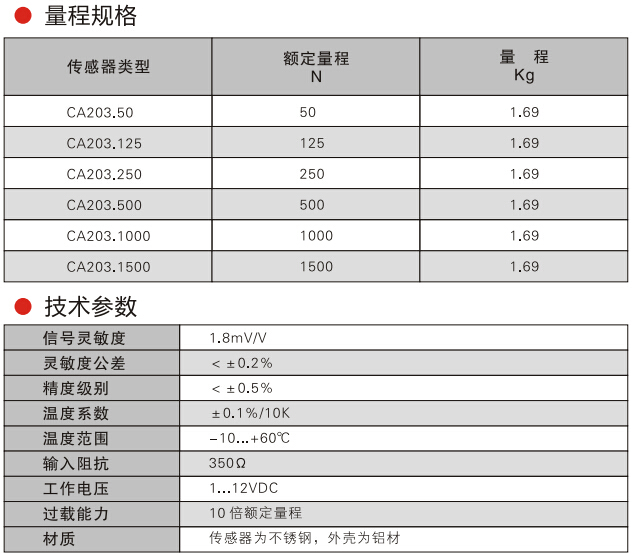 瑞士FMS CA203張力傳感器產(chǎn)品量程規(guī)格、技術(shù)參數(shù)圖:TJU廣州南創(chuàng)電子科技有限公司