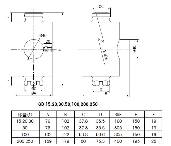 GD-200T GD搖柱式稱重傳感器,容量200T,20M電纜yyj廣州南創(chuàng)電子科技有限公司