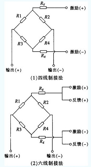 稱重傳感器有四線制接法和六線制接法兩種。稱重傳感器采用四線制接法對二次儀表無特殊要求,便于使用,但電纜線較長時,極易遭受環(huán)境溫度波動等因素的干擾;六線制接法的稱重傳感器要求與之配套使用的二次儀表具備反饋輸入接口,使用范圍具有極限性,但不易遭受環(huán)境溫度波動等因素的干擾,在長距離測量及精密測量時具有一定的優(yōu)勢。H0e廣州南創(chuàng)電子科技有限公司