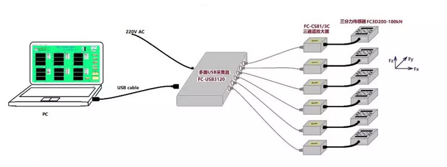 測(cè)力采集系統(tǒng)示意圖:xrs廣州南創(chuàng)電子科技有限公司
