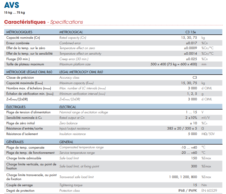 AVS-15KG稱重傳感器法國Scaime
