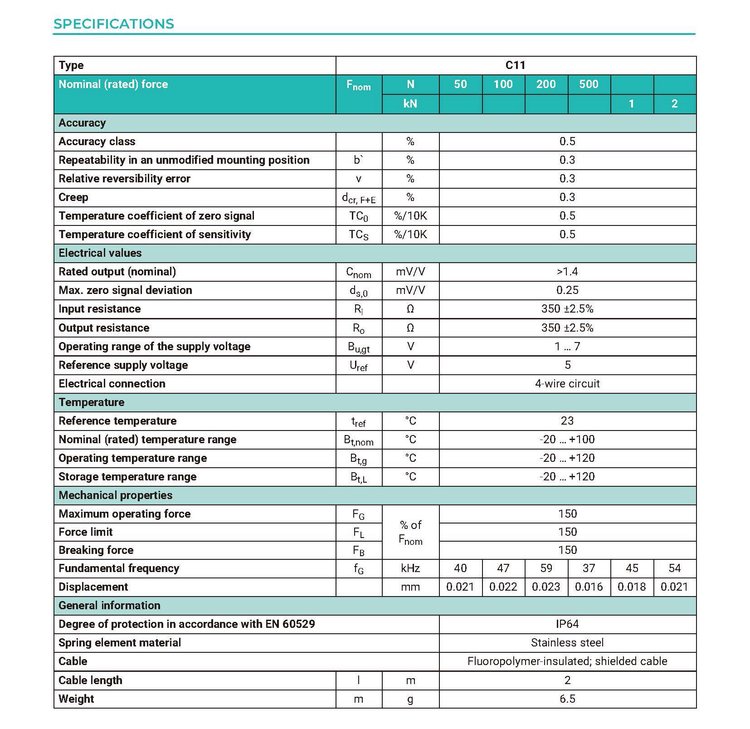 C11微型力傳感器: 結(jié)構(gòu)緊湊,出色的工作溫度范圍,傳感器基于膜片設(shè)計原理,具有極好的剛度,因此,C11 力傳感器可用于快速測量,同時也可用于靜態(tài)測量。盡管尺寸小巧,但同樣具有優(yōu)異的精度。C11 按鈕式力傳感器由不銹鋼制成,適合工業(yè)應(yīng)用領(lǐng)域。電纜屏蔽層和傳感器外殼通過電連接,形成法拉第籠。這保證了其可在不利的電磁兼容條件下進(jìn)行無干擾測量。并具有出色的工作溫度范圍:-20 到 +120°C。載荷通過頂部的球形突起施加,更容易實現(xiàn)力中心加載。79o廣州南創(chuàng)電子科技有限公司