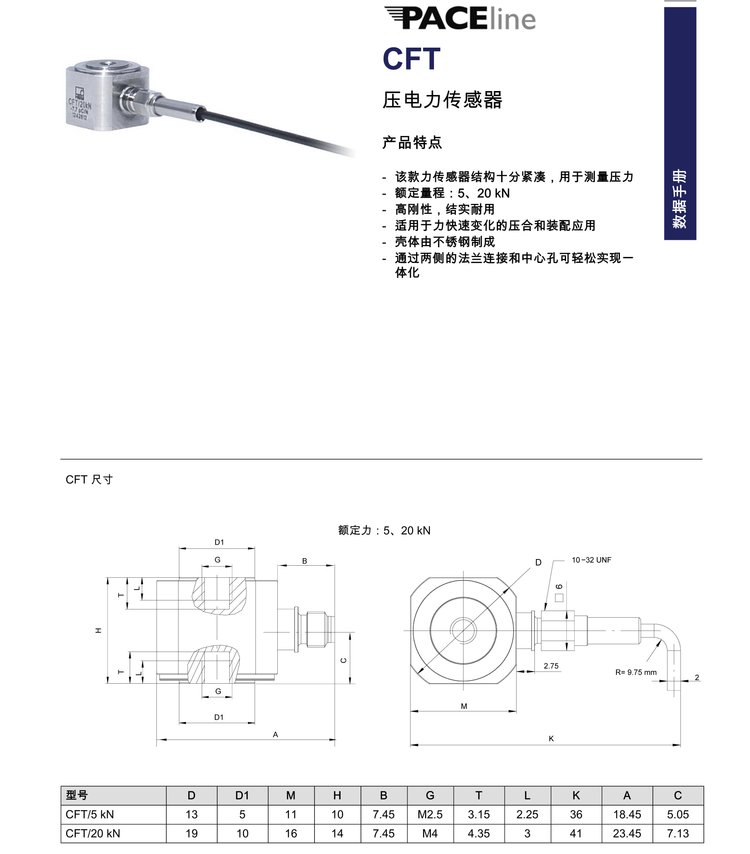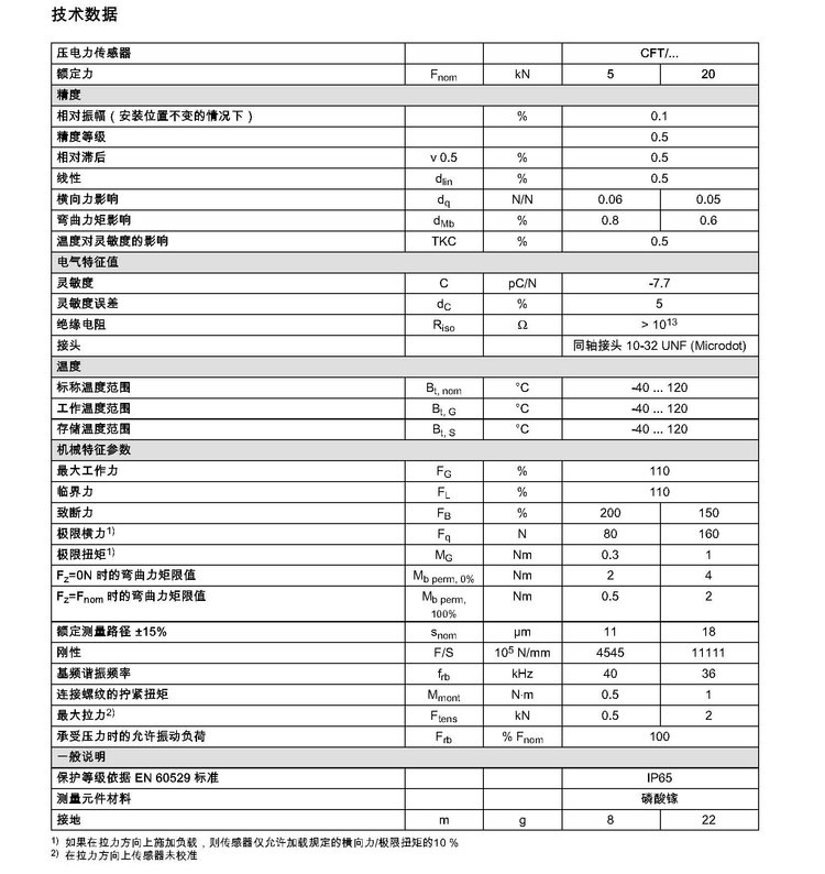 CFT壓電測(cè)力傳感器已預(yù)先施加應(yīng)力并校準(zhǔn),因此可立即使用。此傳感器的最大特點(diǎn)是使用磷=酸鎵作為傳感器材料,與使用石英的傳統(tǒng)壓電式力傳感器相比,靈敏度高達(dá)兩倍。傳感器結(jié)構(gòu)緊湊,完全由不銹鋼材料制成,具有壓電傳感器的典型優(yōu)點(diǎn):可在高初始載荷下測(cè)量幾牛頓的力,或是測(cè)量快速變化的力。位移僅幾微米。4aE廣州南創(chuàng)電子科技有限公司