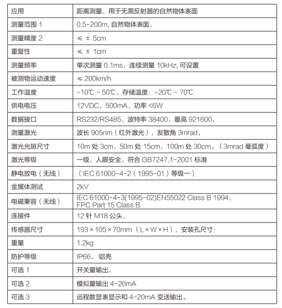 激光測(cè)距傳感器技術(shù)指標(biāo):D30廣州南創(chuàng)電子科技有限公司