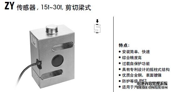 剪切梁式ZY-30t稱重傳感器具有極的綜合精度,合理的設(shè)計方案,使用安全性極高,此款產(chǎn)品大多應(yīng)用于軌道衡,汽車衡及各大配料系統(tǒng),外型不但美觀,而且安裝起來也是十分的方便,防護等級IP168,使用長期穩(wěn)定性好,焊接密封、材質(zhì)使用高度不銹鋼制作,可在高溫下工作,是一款不錯的產(chǎn)品!mFu廣州南創(chuàng)電子科技有限公司