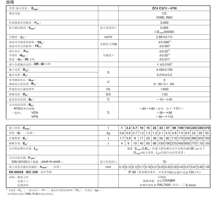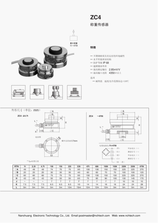 美國NCH稱重傳感器ZC4-100T規(guī)格: