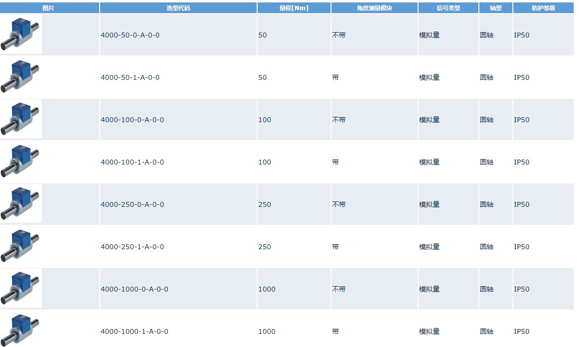FC-S4000系列 NCTE-AG 動(dòng)態(tài)扭矩傳感器代碼型號(hào)有: