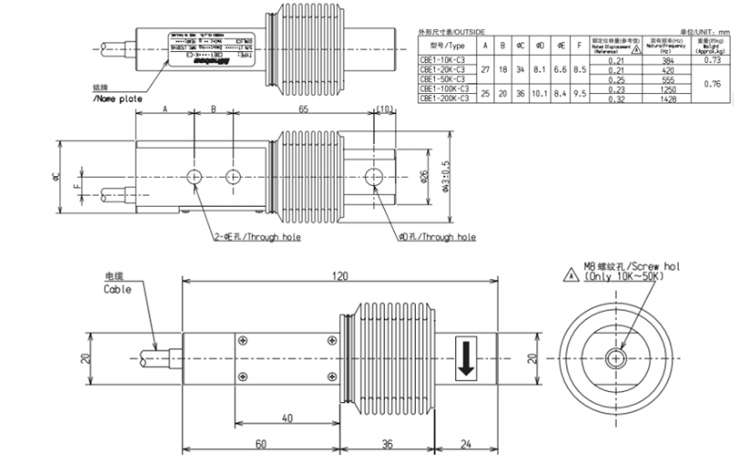 CBE1-5K稱重傳感器Minebea尺寸圖:zMs廣州南創(chuàng)電子科技有限公司
