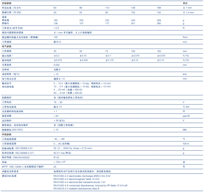 特點: 絕對位置傳感器,運用的是感應測量原理,帶有自由位置標記的非接觸式位置檢測,測量范圍:1000mm, IP67 ,溫度范圍:-40℃-85℃VmT廣州南創(chuàng)電子科技有限公司
