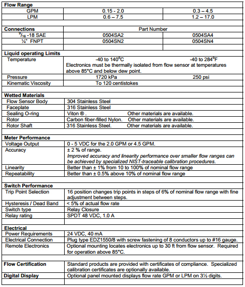 美國Proteus 500系列計(jì)量流量開關(guān)特性:JWN廣州南創(chuàng)電子科技有限公司