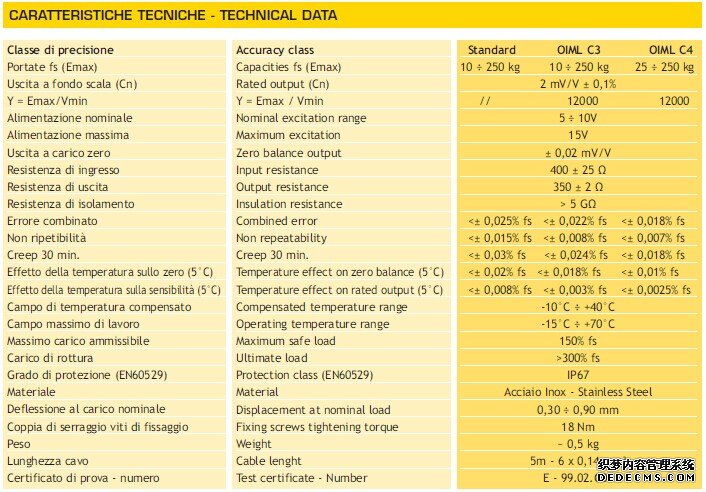 意大利NBC Elettronica稱重傳感器部分型號介紹:ysq廣州南創(chuàng)電子科技有限公司