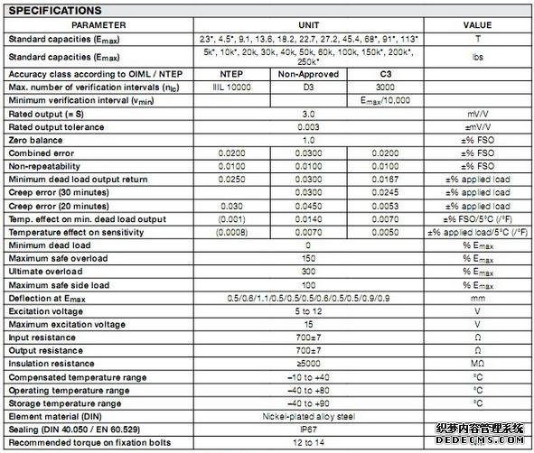 84151: DEB 9223-B10-65k 65000 lb 40 ft RTI 3mv/v 700 Ohm WW NTEP IIIL 10 M FM SSTzVv廣州南創(chuàng)電子科技有限公司