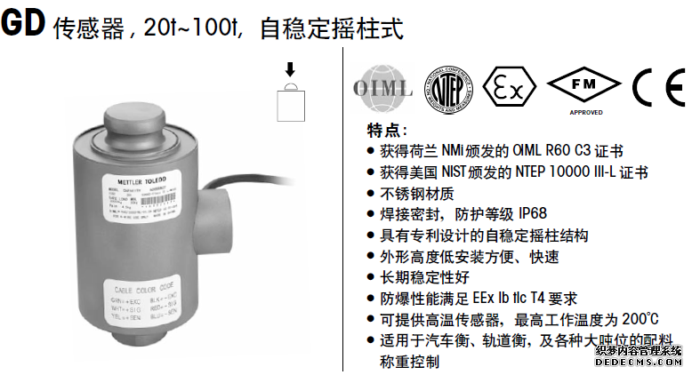 mettler toledo GD高溫?fù)u柱系列所有量程:1vi廣州南創(chuàng)電子科技有限公司