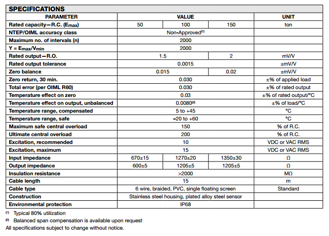 美國(guó)Tedea 122系列稱重傳感器所有量程如下:zBh廣州南創(chuàng)電子科技有限公司
