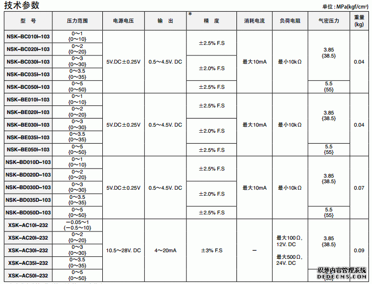日本鷺宮XSK系列壓力傳感器產品技術參數圖:g5P廣州南創(chuàng)電子科技有限公司
