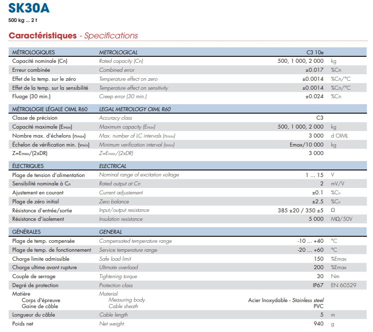 SK30A-500KG稱重傳感器法國Scaime產(chǎn)品參數(shù)圖:I99廣州南創(chuàng)電子科技有限公司