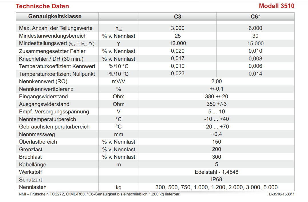 德國(guó)SOEMER 3510系列稱重傳感器技術(shù)參數(shù):EDi廣州南創(chuàng)電子科技有限公司
