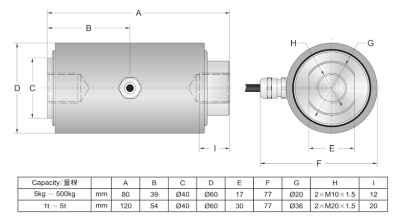 美國傳力Transcell稱重傳感器CR-20kg技術(shù)參數(shù)圖: