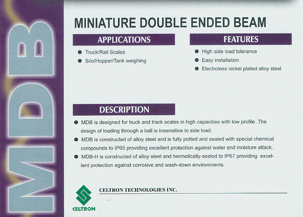 Celtron MDB雙剪切梁式稱重傳感器專為卡車和鐵路的低配置高容量規(guī)模設計。在裝載過程中不易受負載影響。7lN廣州南創(chuàng)電子科技有限公司