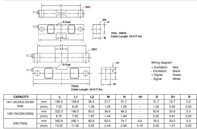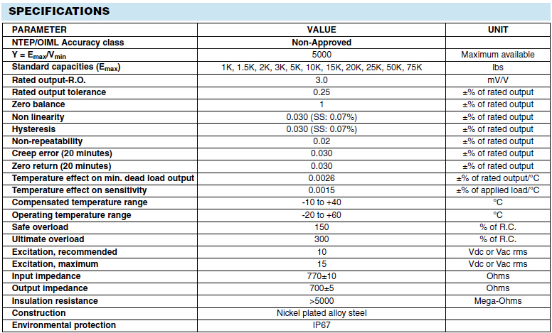 美國世銓Celtron DSR系列稱重傳感器所有量程如下: H72廣州南創(chuàng)電子科技有限公司