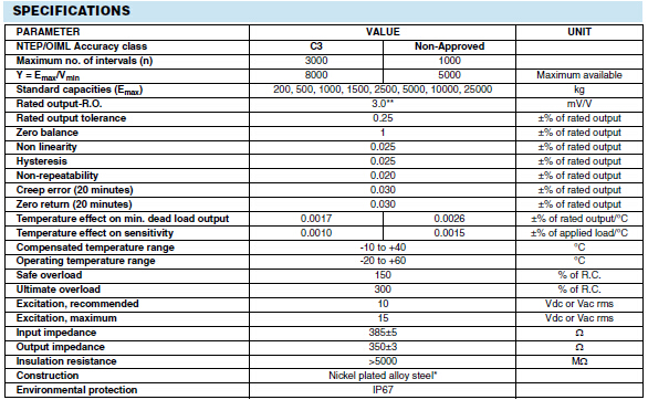 美國(guó)世銓Celtron PSD系列稱重傳感器所有量程如下:ryy廣州南創(chuàng)電子科技有限公司