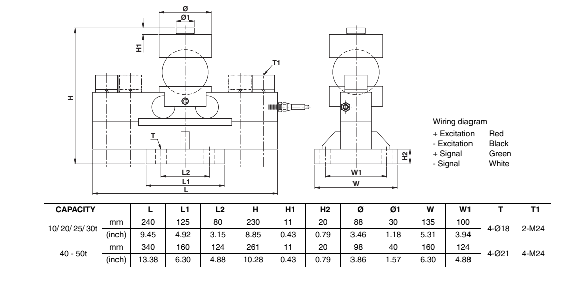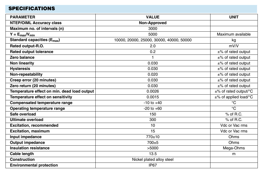 美國世銓celtron MDB 50t MDB50t稱重傳感器只要嚴(yán)格保證三個(gè)或四個(gè)雙曲面壓力頭的安裝精度,整個(gè)電子衡器的精度就容易得到保證。     采用的三個(gè)或四個(gè)雙曲面球型壓力頭與單曲面球型結(jié)構(gòu)的組合多個(gè)稱重傳感器的電子衡器,這種電子衡器可以利用三個(gè)或四個(gè)雙曲面球型壓力頭起到承重臺的定位作用,而使用的單曲面球型壓力頭的上壓頭的底面為平面,不論是由于安裝位置所引起的誤差,還是由于溫度變化引起的承重臺面的脹、縮、則都能保證其鋼球頂點(diǎn)至承重臺底面的高度,從而保證其大型電子衡器的計(jì)量精度.1OJ廣州南創(chuàng)電子科技有限公司