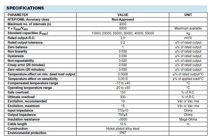 Standard capacities (Emax)      kg    10000, 20000, 25000, 30000, 40000, 50000                  Eae廣州南創(chuàng)電子科技有限公司