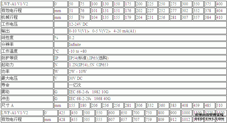 德國(guó)VOLFA LWF系列直線位移傳感器參數(shù)圖:wcT廣州南創(chuàng)電子科技有限公司