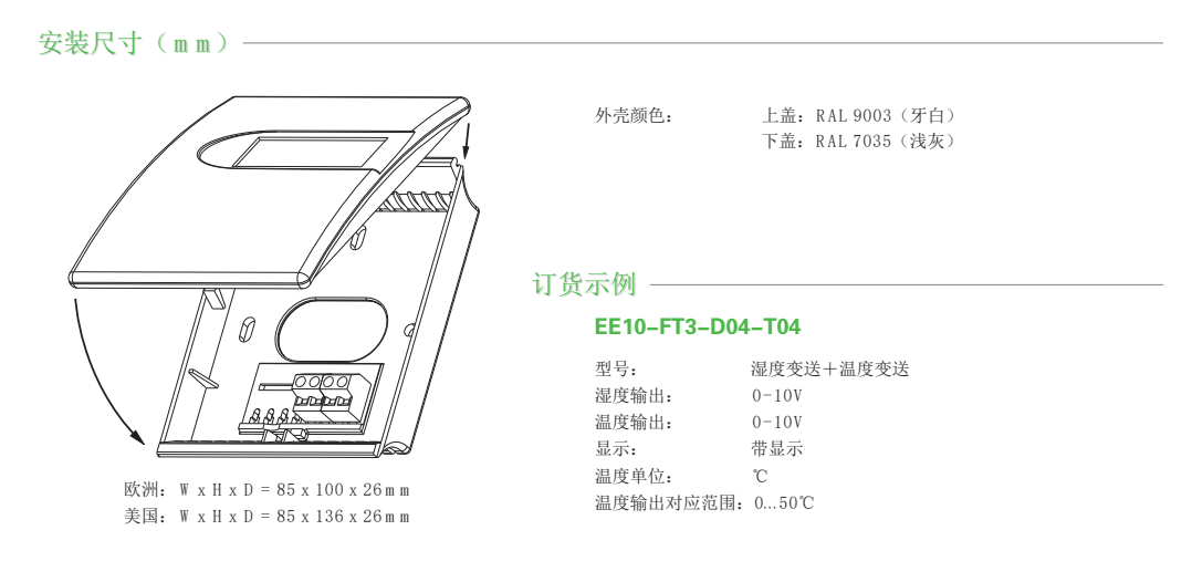 奧地利E+E全系列溫濕度傳感器, 暖通空調(diào)用室內(nèi)溫濕度變送器 , 系列溫濕度變送器專為暖通空調(diào)領(lǐng)域溫濕度測量而設(shè)計,適用于商業(yè)樓宇和常規(guī)建筑的BA系統(tǒng)。變送器采用 E+E高品質(zhì)的 HC103 濕敏元件,測量精度高。變送器外型設(shè)計美觀,安裝簡便。濕度輸出信號為標(biāo)準(zhǔn)4-20mA或0-10VDC信號,溫度輸出可選擇4-20mA或0-10VDC的標(biāo)準(zhǔn)信號或電阻輸出信號。系列有兩晶顯示模塊用以現(xiàn)場的溫濕度顯示。種外型設(shè)計以滿足不同地區(qū)標(biāo)準(zhǔn),且所有產(chǎn)品都可以配置清晰的液25.7。dK8廣州南創(chuàng)電子科技有限公司