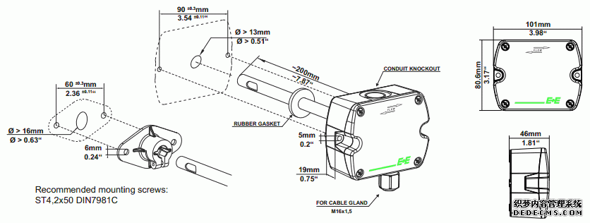 奧地利E+E EE850系列CO2變送器產(chǎn)品尺寸圖:XpY廣州南創(chuàng)電子科技有限公司